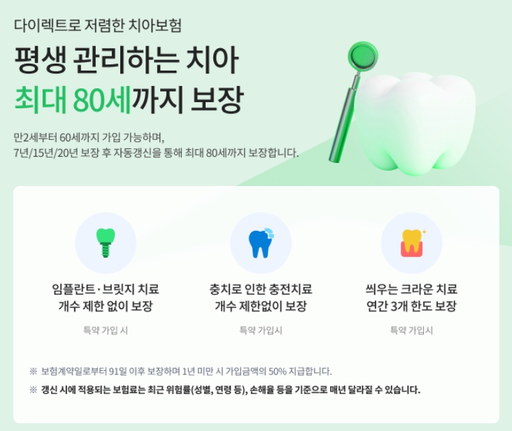 2. DB다이렉트 - 평생 관리하는 치아 최대 80세까지 보장