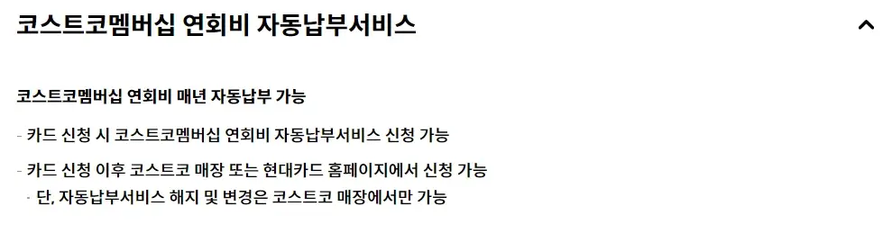 코스트코 연회비를 해당 카드로 자동 납부가 가능합니다