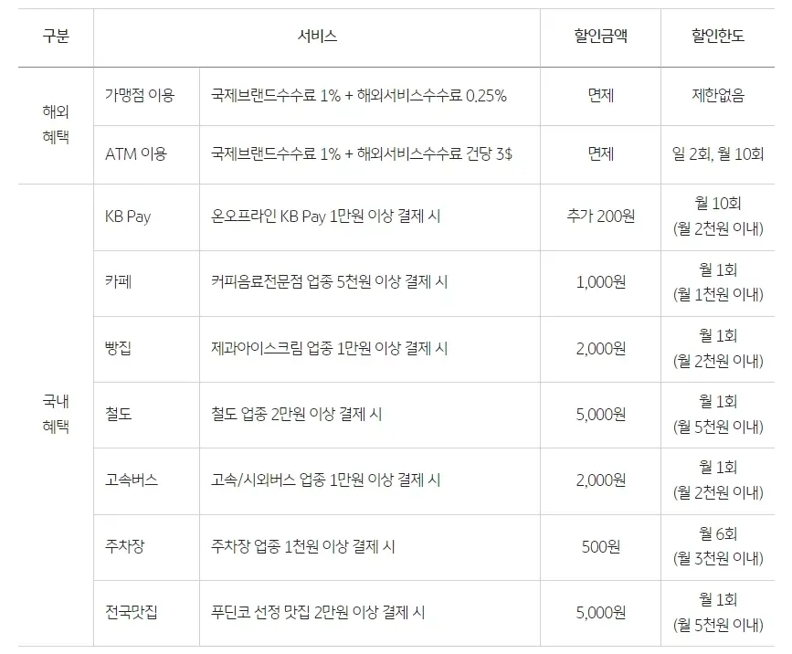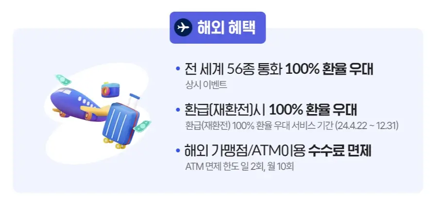 - 해외 가맹점 및 ATM이용 수수료 면제