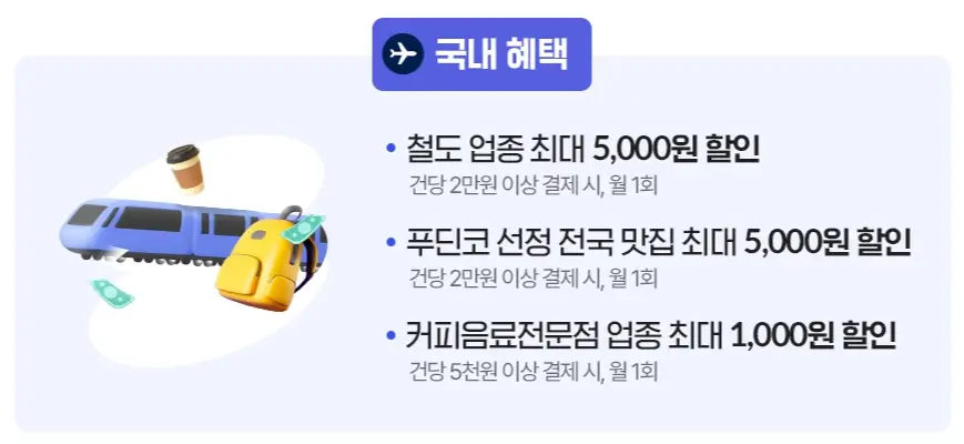 국내 여행에서도 나름 깨알 같은 할인혜택이 있으니, 국내 여행을 계획 중이시라면 놓치지 마시고 준비해 보세요