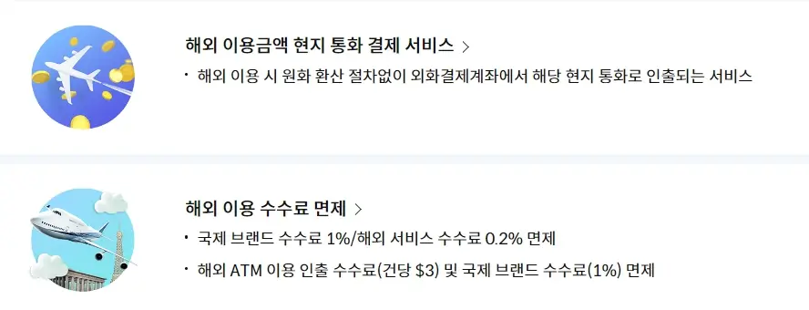 - 해외 ATM 인출 수수료(건당 $3) 및 국제 브랜드 수수료(1%) 면제