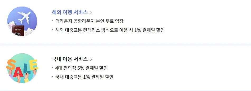 해외 이용뿐만 아니라, 국내에서 이용 시에도 4대 편의점에서 5% 할인 혜택과